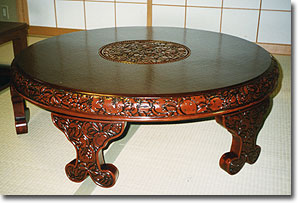 子供のとき家族の食事に毎日使ってきたちゃぶ台を、結婚時にそのまま新居に持ってこられていました。 表面のキズ一つ一つにも思い出があり、そのもの自体にもいっぱいの思い出をお持ちのようでした。何とか今の生活の中で使えるように出来ないかとご相談受けました。 |