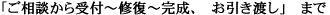 *ご契約後のキャンセルや不慮の事故などによる修復の中断が発生した場合は、ご相談の上、中断時点までの実費を申し受けます。 |